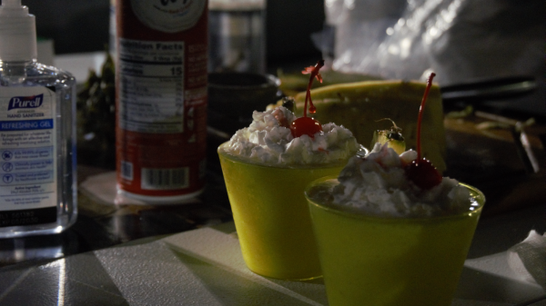 Attendees offered free drinks and snacks during the event. Coolers in open trunks graced the muggy evening with Capri Sun, Monster Energy, chocolate chip cookies and Skittles. One volunteer mixologist crafted virgin piña coladas topped with whipped cream and maraschino cherries.